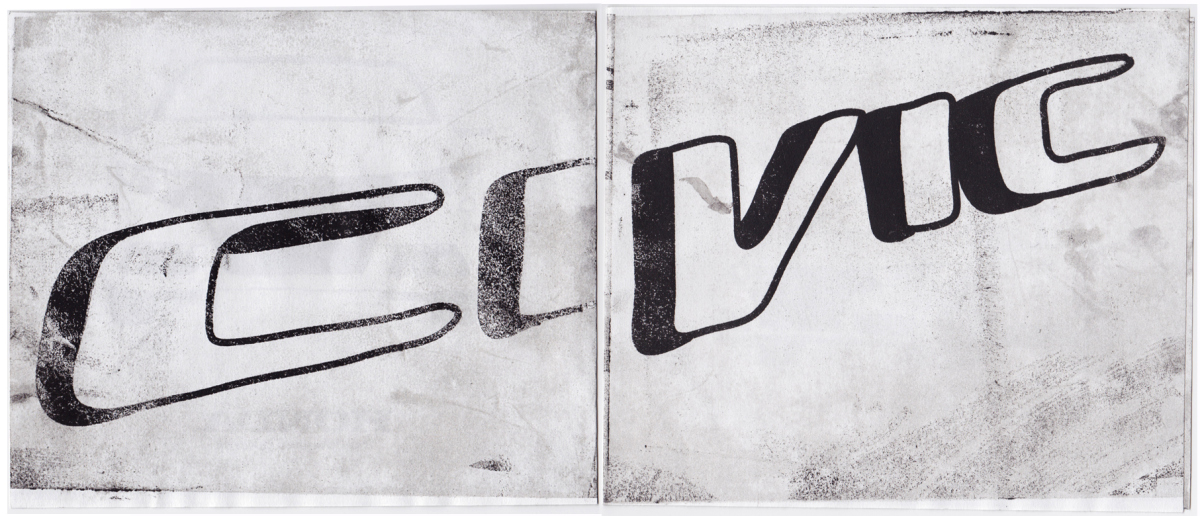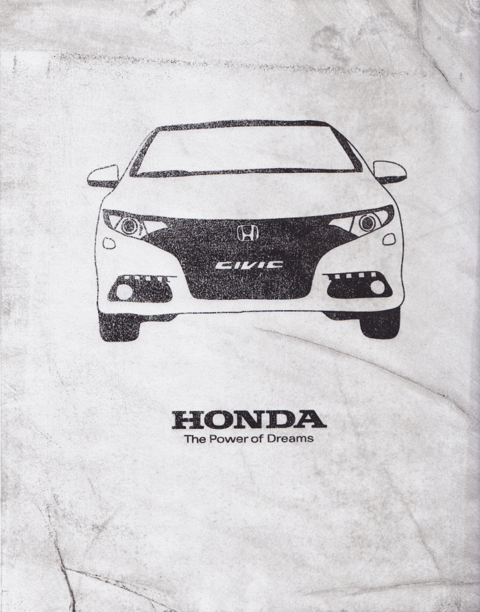 I’ve been experimenting with the idea of humanising a brand using the human aesthetic, so continuing to work on the Honda Civic these prints were produced using gum printing.