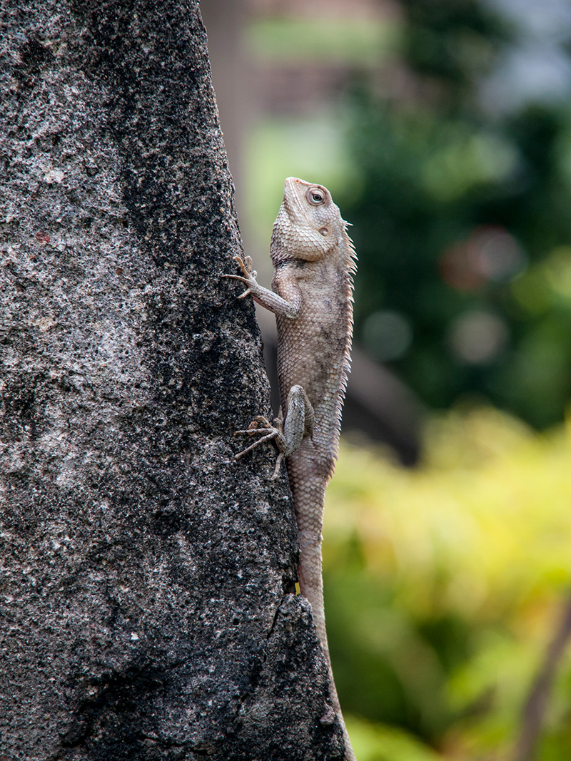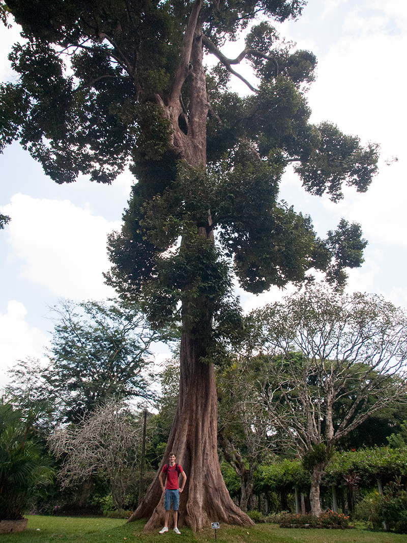 Freddie getting intimidated by a very tall tree, Botanical Gardens Kandy
