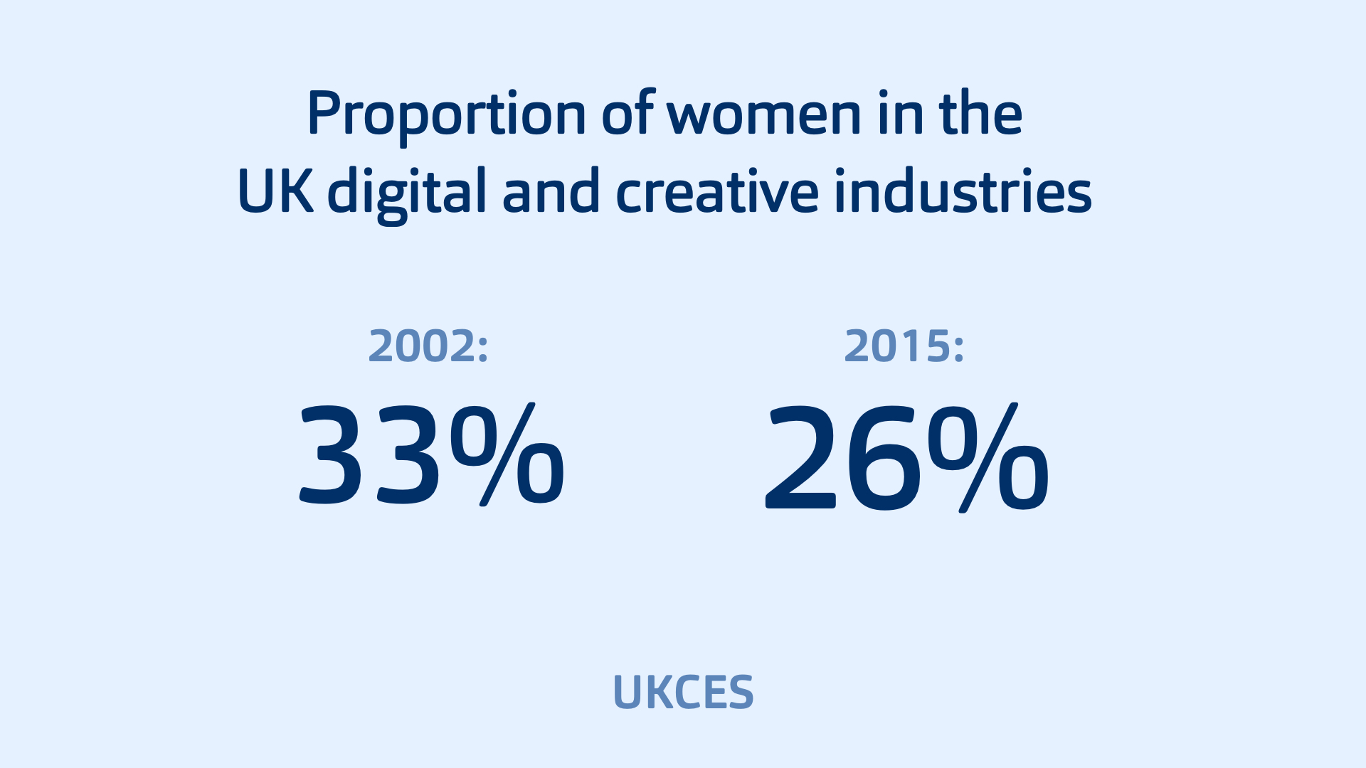 …where as actually the proportion of women working in the UK digital and creative industries as a whole isn’t much better, at around 26%. This figure is terrifying for two reasons – firstly this includes creative, marketing, HR and admin roles that are more likely to be filled with women, and secondly this figure has actually fallen from 33% in 2002. Something is going very, very wrong.