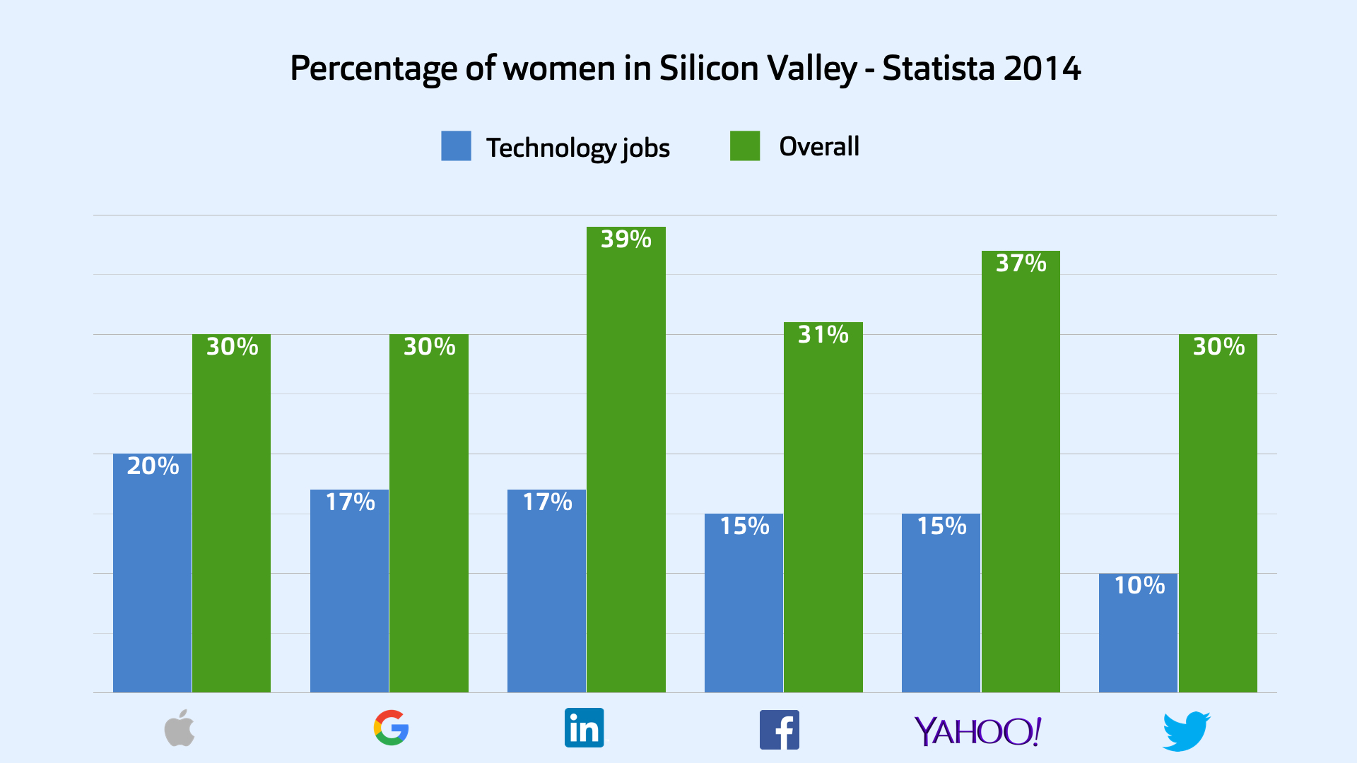 The figures coming out of Silicon Valley are dreadful. Only 10% of the technology workforce at Twitter is female, and the likes of Facebook, Google, LinkedIn and Apple really aren’t much better. Lets remember that these are not old, institutionalised employers – the majority of them are less than 15 years old, and they’re coming out of the very liberal Silicon Valley. And when you consider that the majority of the products that these companies are making have a user base of around 50% when, there is absolutely no excusing these figures.
