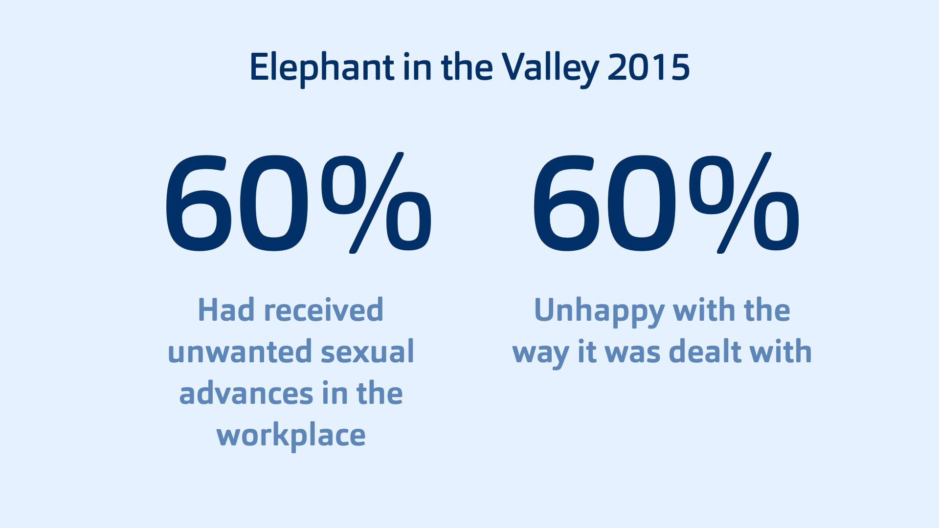 In 2015 this culture was researched further with the Elephant in the Valley Survey. This went out to over 200 women across Silicon Valley, and the results were as follows.